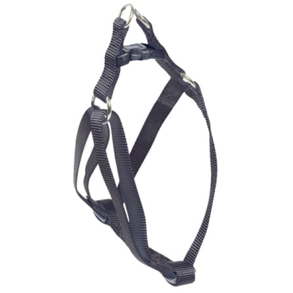The basic harness is a nice nylon harness that is easy to put on the dog. It just has to ” step into ” the harness, and then the harness has to be closed on the dog’s back.