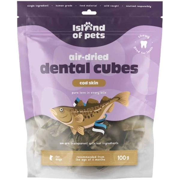 De lufttørrede Dental Sticks med torskeskind kombinerer naturlig smag med effektiv tandpleje. Den langsomme lufttørringsproces ved under 30°C sikrer, at godbidderne er gode for følsomme maver. Deres sprøde tekstur hjælper med at rense tænder og tandkød og reducerer tandsten og plak. Island of Fish er produceret med vedvarende energikilder, hvilket bidrager til bæredygtighed.
