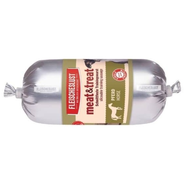 Indhold: 100% hest (70% magert hestekød, 20% hestehjerte, 9,5% fedt, 0,5% havsalt)