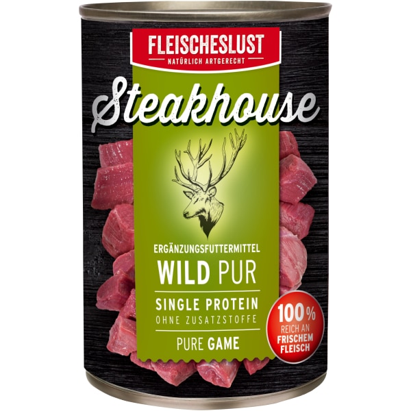 Sammensætning: Frisk kanin 45%, frisk svinekød 30%, frisk fisk 10%, hydrolyseret stivelse, glycerin, roemasse, spidskommen, WoolfGastroprotect (æteriske olier (oregano, timian, rosmarin, Ceylon-kanel, nellike), tørret ekstrakt af grøn te, B-glucaner og mannanoligosaccharider (MOS) ekstraheret fra Saccharomyces cerevisiae), bufret eddike.